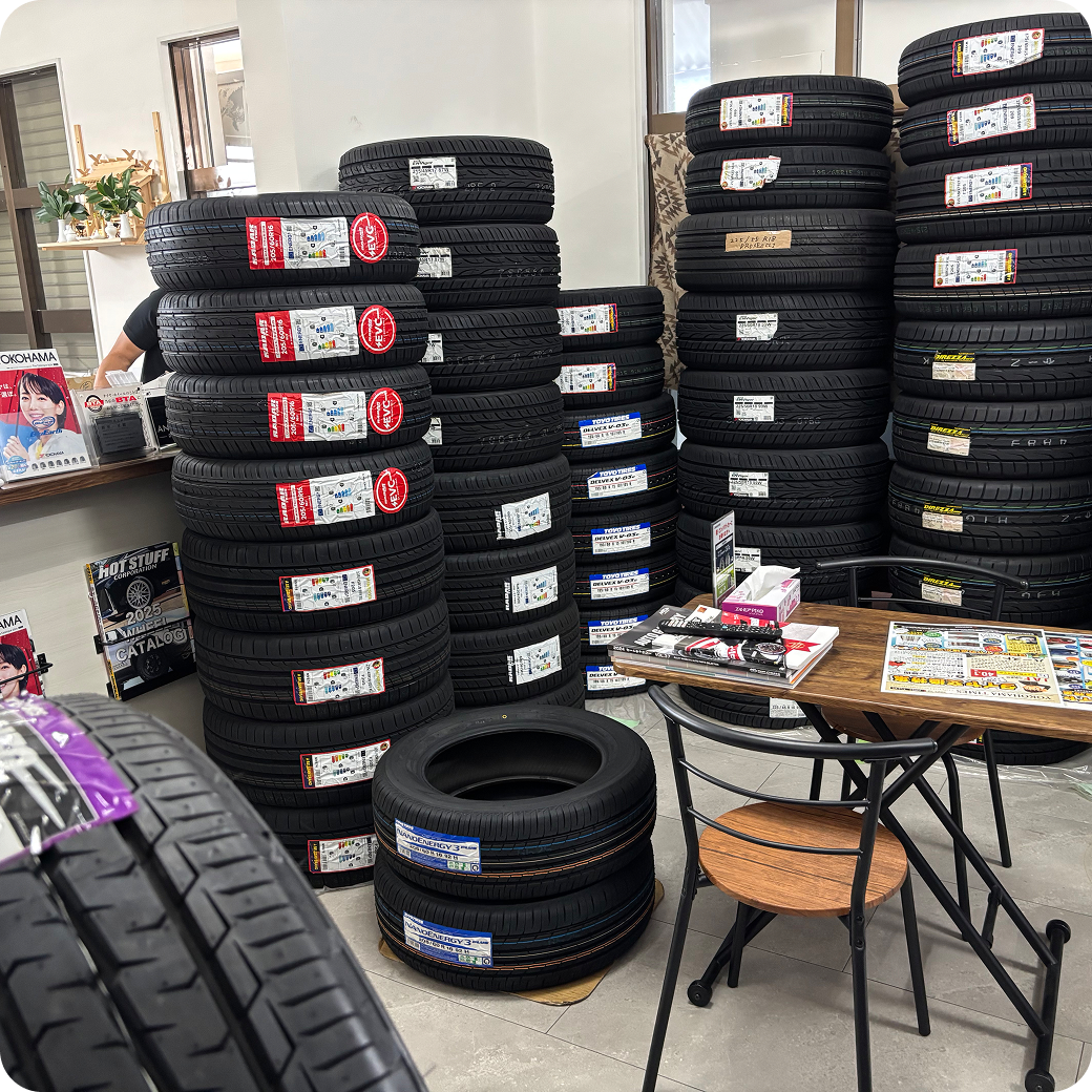 私たちは「お客様の安全を第一に」を理念に、地域に根ざしたタイヤ交換・販売・整備を行っております。国産タイヤを中心に豊富な在庫を揃え、軽自動車から大型・特殊車両まで幅広く対応。迅速で確実な作業を実現しています。